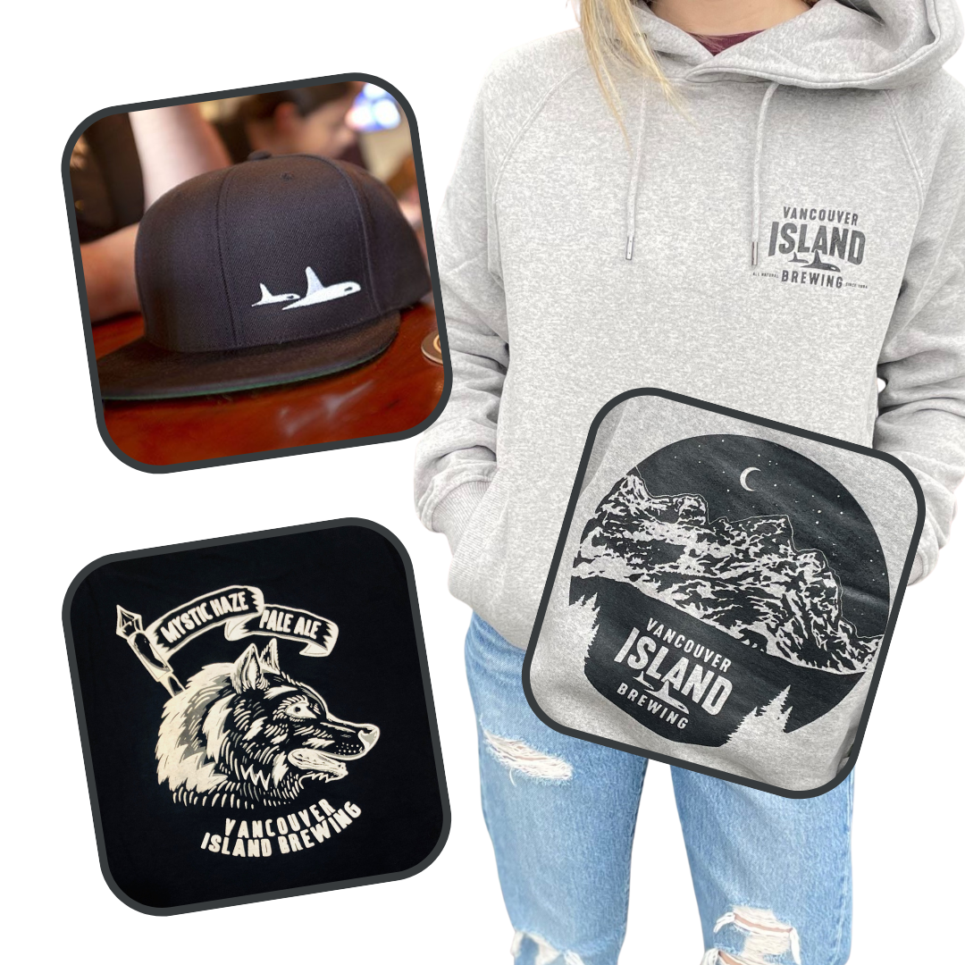 -Black hat with their signature orca design -Super soft navy blue Tee (large) with a logo on the front and the Mystic Pale Ale wolf on the back (see image) -Large grey logo hoodie with mountain design on the back (see image) Valued at $120 Current bid: $85 Donated By Vancouver Island Brewing Item pickup location: Intrepid Theatre Office. |